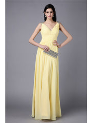 Sheath/Column V-neck Sleeveless Beading Long Chiffon Dresses