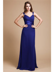Sheath/Column V-neck Sleeveless Ruffles Long Chiffon Bridesmaid Dresses - US 2 / UK 6 / EU 32