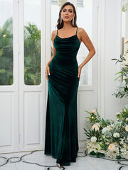 Sheath/Column Velvet Ruched Spaghetti Straps Sleeveless Floor-Length Bridesmaid Dresses