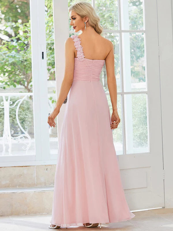Sweet Pleated Bodice One Shoulder Chiffon Bridesmaid Dress