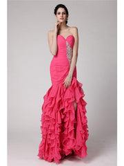 Trumpet/Mermaid Sweetheart Sleeveless Beading Ruffles Long Chiffon Dre – Buyishang Dresses index