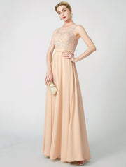 A-Line Classic & Timeless Keyhole Pastel Colors Holiday Cocktail Party Prom Dress Illusion Neck Sleeveless Floor Length Chiffon Beaded Lace with Pleats Appliques