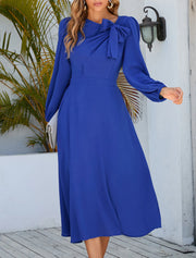 A-Line Cocktail Dresses Party Dress Wedding Guest Cocktail Party Tea Length Long Sleeve Jewel Neck Spandex with Ruched - US 2 / UK 6 / EU 32