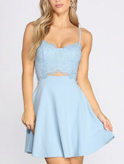 A-Line Cocktail Dresses Reformation Amante Dress Wedding Guest Graduation Short / Mini Sleeveless Sweetheart Lace with Pleats - Sky Blue / US 2 / UK 6 / EU 32