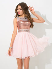 A-Line/Princess Sheer Neck Sequin Sleeveless Short Chiffon Cocktail Dresses