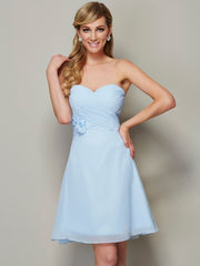 A-Line/Princess Sweetheart Sleeveless Hand-Made Flower Short Chiffon Homecoming Dresses