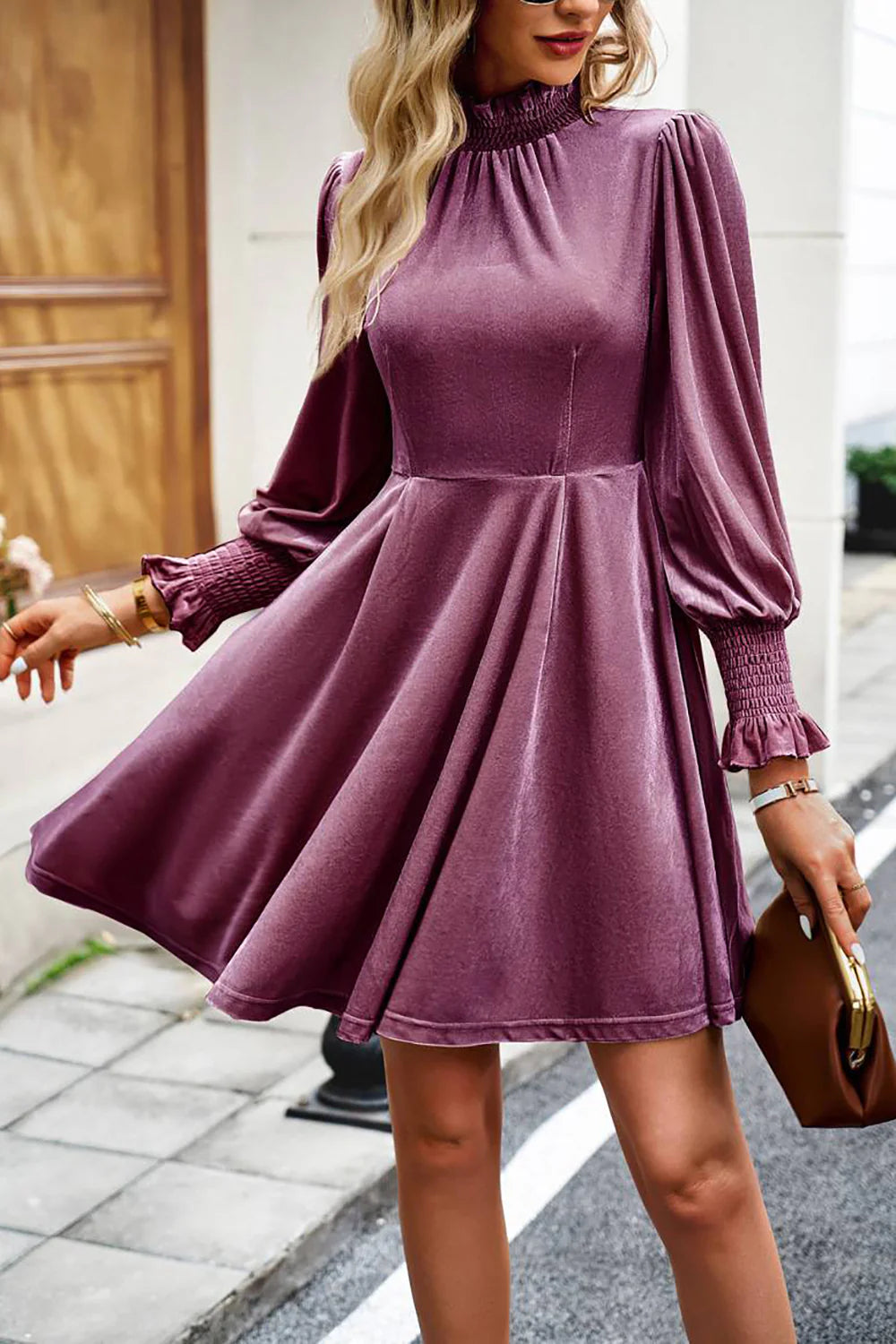 Burgundy Long Sleeves A Line Velvet Holiday Party Dress – Buyishang Dresses index