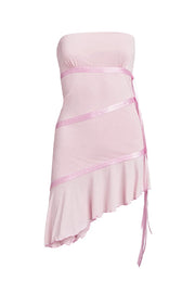 Strapless Asymmetrical Ruffles Pink Cocktail Party Dress - Pink / US 2 / UK 6 / EU 32