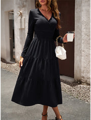 Women's Black Dress Party Dress Cocktail Dress Midi Dress Black Wine Green Long Sleeve Plain Ruched Summer Spring Fall V Neck Party Winter Dress Wedding Guest Vacation