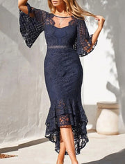 Women's Lace Dress Wedding Guest Dress Party Dress Sheath Dress Lace Midi Dress White Red Wine Dark Blue Half Sleeve Pure Color Pure Color Fall Spring Sweetheart Elegant - Dark Blue / US 2 / UK 6 / EU 32