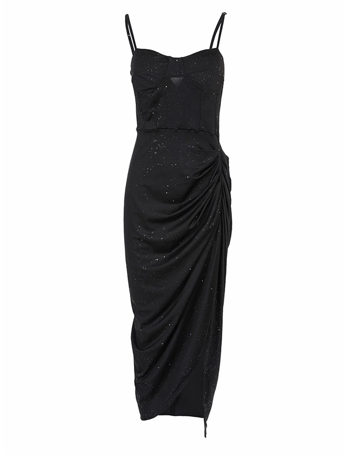 Women's Little Black Dress Cocktail Dress Black Sequin Dress Party Dress Midi Dress Sleeveless Spring Fall Winter Spaghetti Strap Fashion Wedding Guest