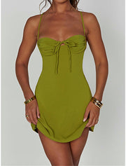 Women's Party Dress Cocktail Dress Semi Formal Dress Mini Dress Black Brown Green Sleeveless Pure Color Lace up Spring Fall Winter Spaghetti Strap Fashion Birthday Wedding Guest Vacation - Green / US 2 / UK 6 / EU 32