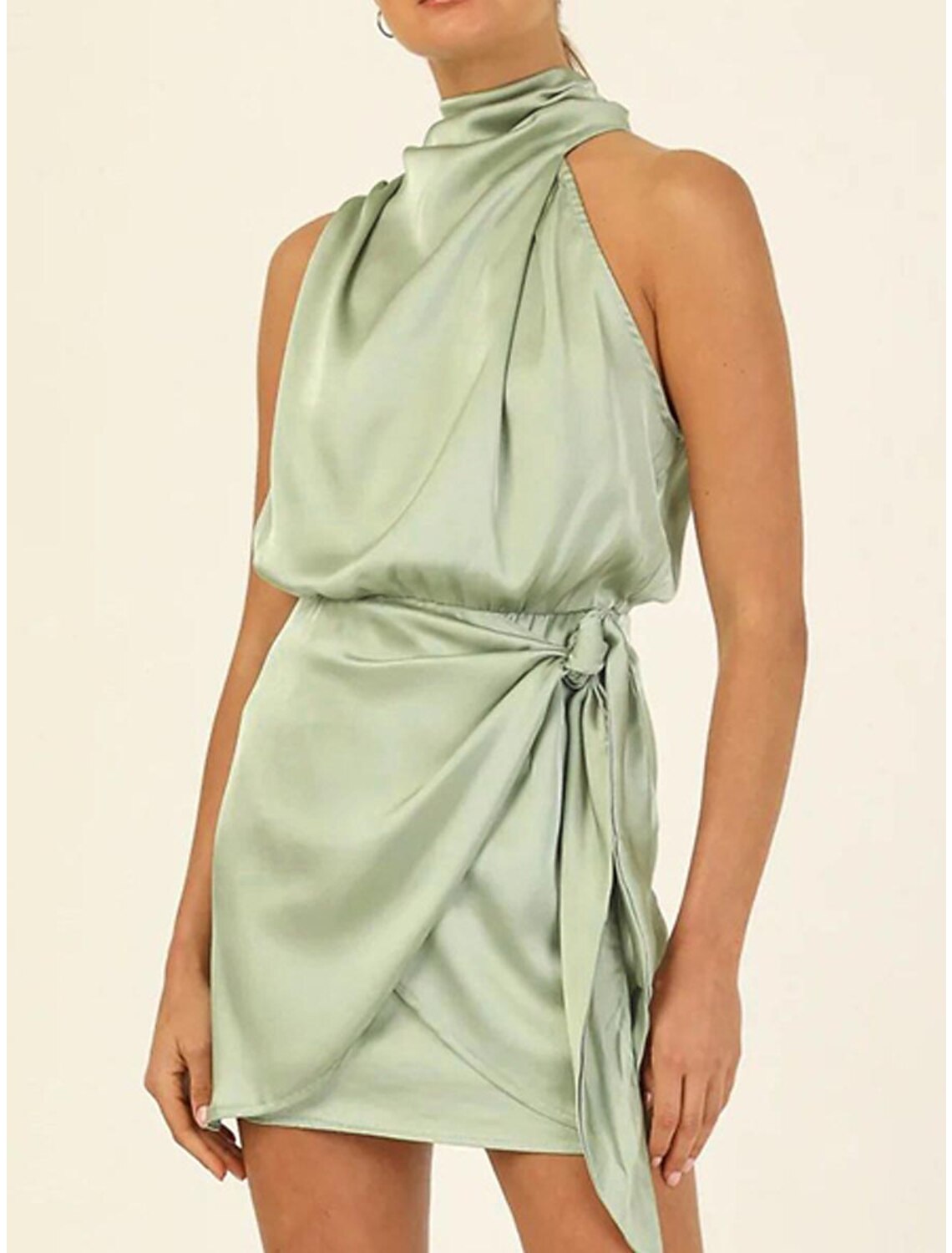 Women's Party Dress Homecoming Dress Cocktail Dress Mini Dress Black Champagne Light Green Sleeveless Pure Color Lace up Spring Fall Winter Halter Neck Fashion Wedding Guest Birthday Vacation Loose - Light Green / US 2 / UK 6 / EU 32