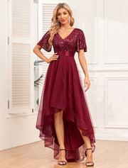 Women's Sequin Dress Prom Dress Party Dress Sparkly Dress Christmas Red Dress Long Dress Maxi Dress Wine Short Sleeve Mesh Sparkly Glitter Summer Spring Fall V Neck Fashion - US 2 / UK 6 / EU 32