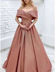 A-Line Evening Gown Elegant Dress Formal Court Train Short Sleeve Off Shoulder Sequined with Glitter Pleats Ruched