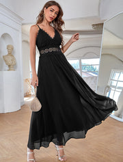 A-Line Evening Gown Elegant Dress Party Wear Formal Evening Ankle Length Sleeveless Spaghetti Strap Chiffon with Sequin Pure Color Splicing - US 2 / UK 6 / EU 32