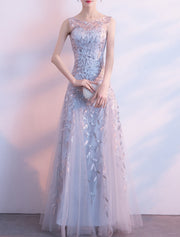 A-Line Prom Dresses Floral Dress Prom Formal Evening Floor Length Sleeveless Jewel Neck Tulle with Embroidery Pattern / Print - US 2 / UK 6 / EU 32