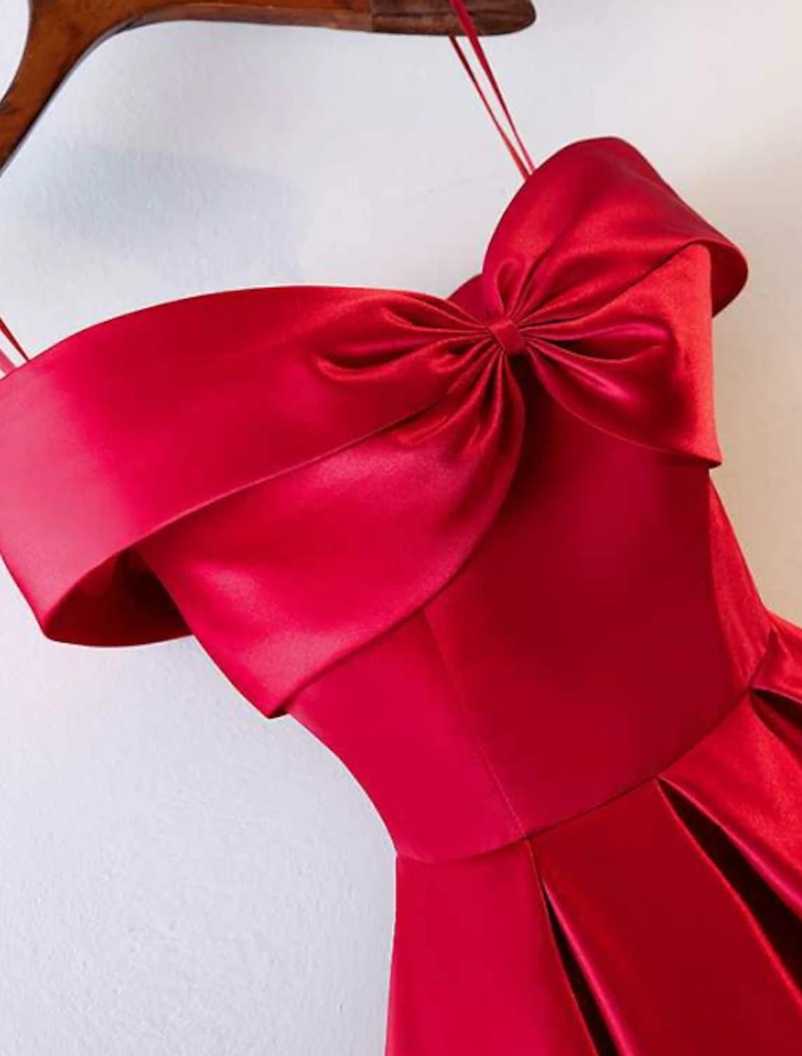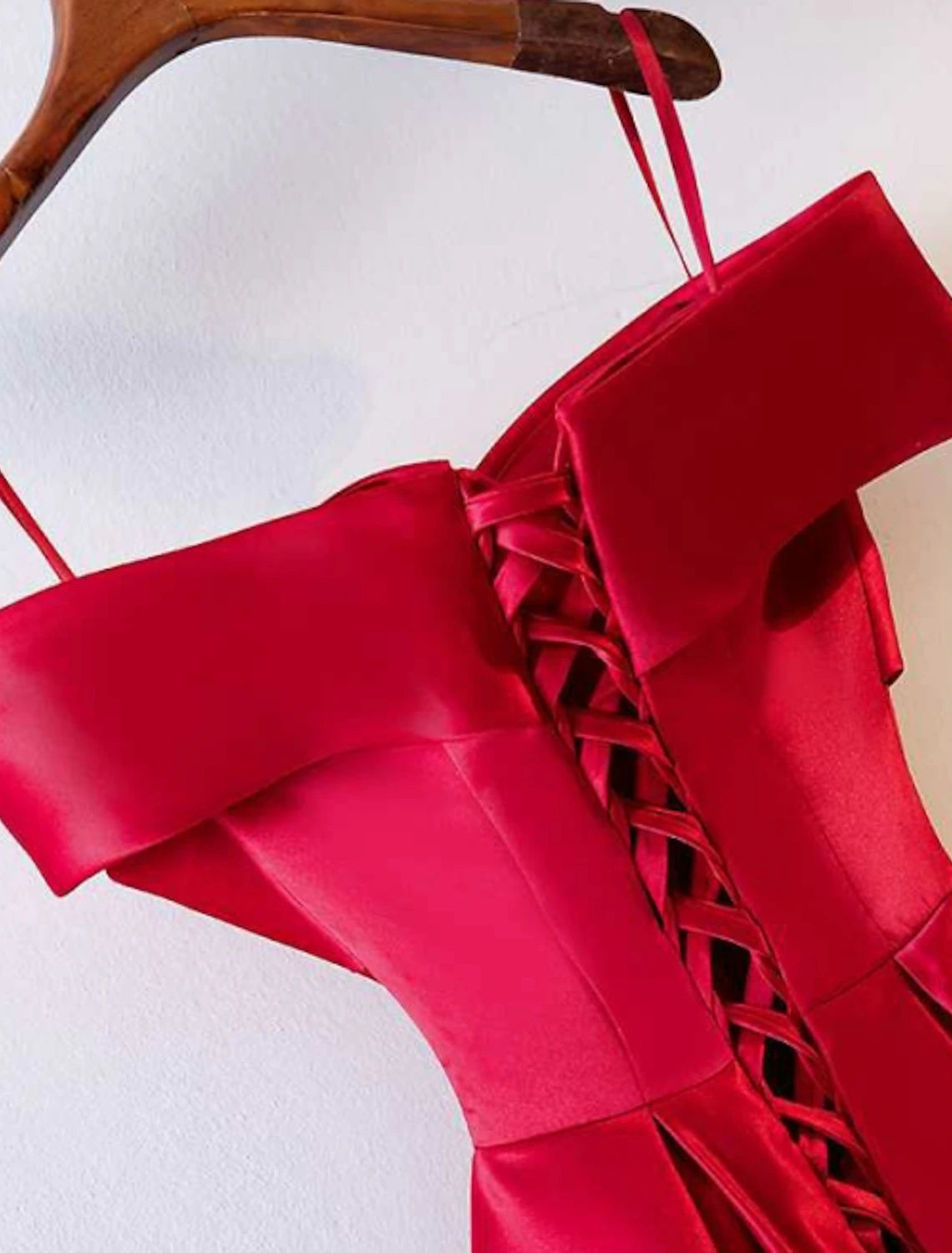 A-Line Prom Dresses Open Back Dress Wedding Guest Prom Floor Length Short Sleeve Off Shoulder Satin with Ruched - US 2 / UK 6 / EU 32