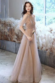 A-Line Tulle Long Prom Dress with Beaded Off the Shoulder Evening Party Dress