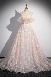 Beautiful Floor Length Sequins and Flowers Party Dress Off the Shoulder Tulle Formal Dress