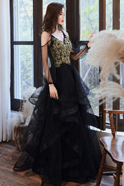 Black Spaghetti Strap Lace Long Prom Dress Black Evening Graduation Dress