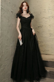 Black Tulle Long Prom Dress with Beaded Black Evening Graduation Dress