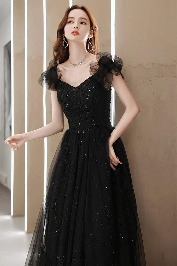 Black Tulle Long Prom Dress with Beaded Black Evening Graduation Dress – Buyishang Dresses index