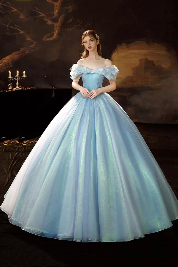 Blue Tulle Long Princess Dress A-Line Off the Shoulder Evening Party D – Buyishang Dresses index