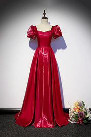 Burgundy Satin Long Prom Dress Simple A-Line Evening Dress
