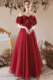 Burgundy Tulle Long Prom Dress Off the Shoulder Beautiful A-Line Evening Party Dress - US 2 / UK 6 / EU 32