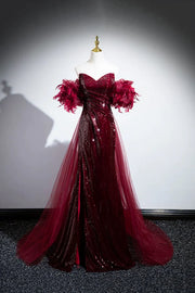 Burgundy Tulle Sequins Long Prom Dress Burgundy Evening Party Dress
