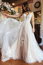 Champagne Lace Long A-Line Prom Dress Champagne Evening Party Dress