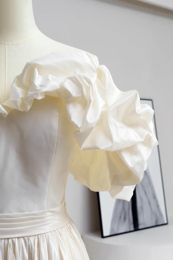 Champagne Satin Floor Length Prom Dress Off the Shoulder A-Line Evening Party Dress