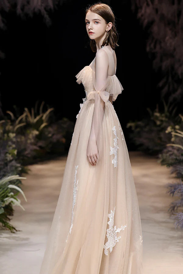 Champagne Tulle Lace Long Prom Dress Cute A-Line Evening Dress – Buyishang Dresses index