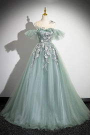 Cute Scoop Neckline Tulle Long Prom Dress with Lace A-Line Off the Shoulder Evening Party Dress - US 2 / UK 6 / EU 32