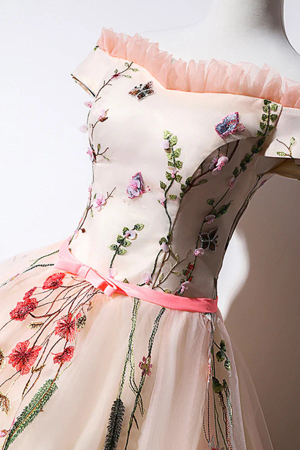 Cute Tulle Lace Long Formal Dress A-Line Off Shoulder Party Dress - US 2 / UK 6 / EU 32