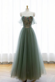 Gray Green Tulle Beaded Long Prom Dress Beautiful A-Line Evening Dress – Buyishang Dresses index
