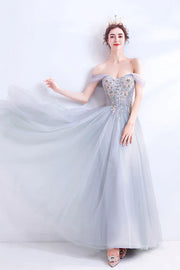 Gray Lace Long A-Line Prom Dress Off the Shoulder Evening Party Dress – Buyishang Dresses index