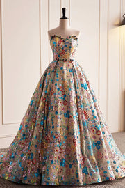 Lovely Sweetheart Floral Sequin Long Prom Dress A-Line Strapless Evening Dress