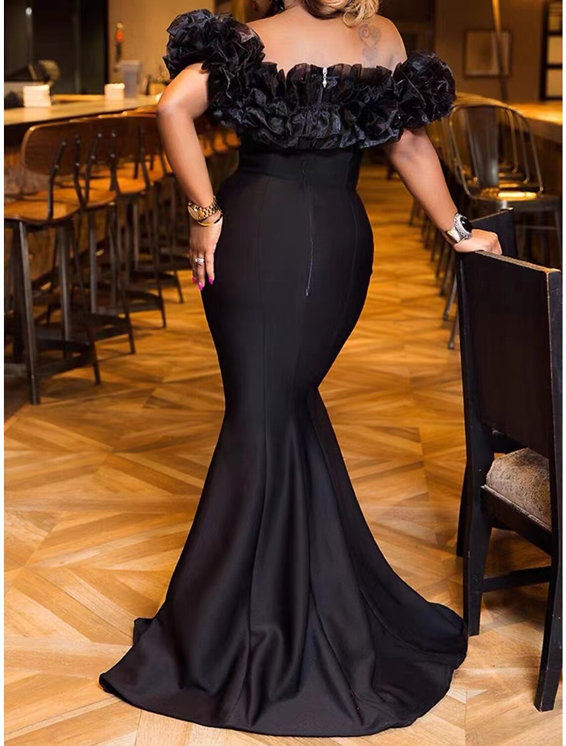 Mermaid Evening Gown Emerald Green Dress Red Green Dress Engagement Sweep / Brush Train Short Sleeve Off Shoulder Stretch Satin with Sleek - Dark Green / US 2 / UK 6 / EU 32