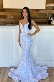 Mermaid Sequins Long Prom Dress White Strapless Evening Party Dress – Buyishang Dresses index