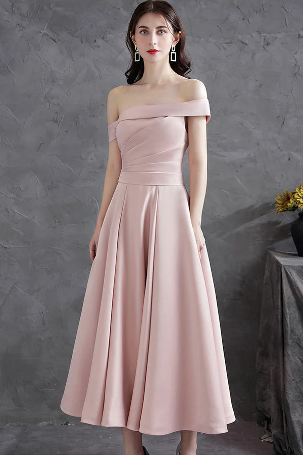 Pink Satin Short A-Line Prom Dress Off the Shoulder Evening Party Dres – Buyishang Dresses index