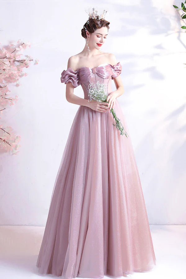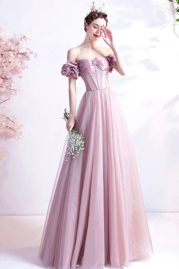 Pink Sweetheart with Beaded Tulle Prom Dresses Pink Long Formal Dresse – Buyishang Dresses index