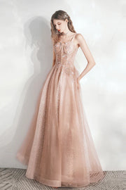 Pink Tulle Long A-Line Evening Party Dress Cute Pink Prom Dress