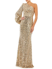 Sheath / Column Evening Gown Sparkle Dress Wedding Guest Black Tie Floor Length Long Sleeve One Shoulder pink hobbies Dresses Sequined with Slit