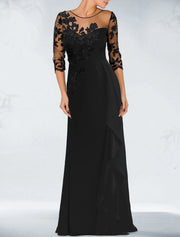 Sheath Evening Gown Elegant Black Dress Wedding Guest Fall Floor Length 3/4 Length Sleeve Jewel Neck Satin with Beading Appliques