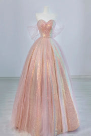 Shiny Tulle Sequins Long Prom Dress Beautiful A-Line Formal Dress Sweet 16 Dress