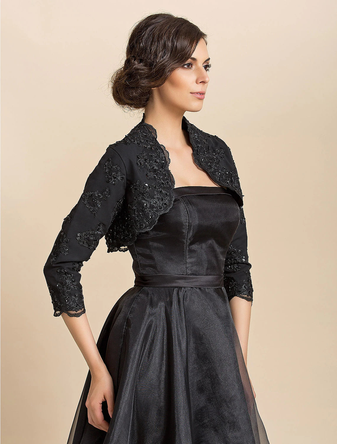 Wedding Wraps Bolero Coats / Jackets Long Sleeve T-shirt Sleeve Lace Wedding Wraps With Sequin For Wedding
