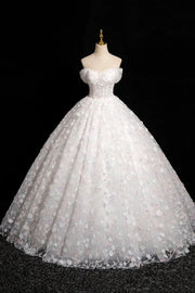 White Tulle Flowers Floor Length Prom Dresses Beautiful A-Line Backles – Buyishang Dresses index