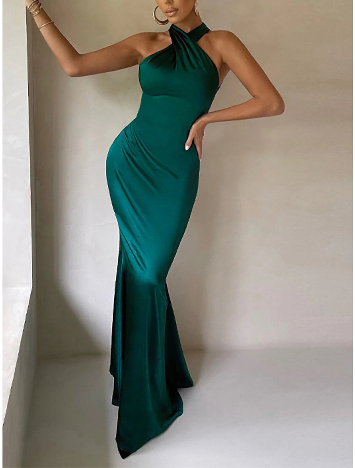 Women‘s Black Dress Prom Dress Party Dress Bodycon Sheath Dress Long Dress Maxi Dress Brown Green Sleeveless Backless Spring Halter Neck Fashion Evening Party Slim